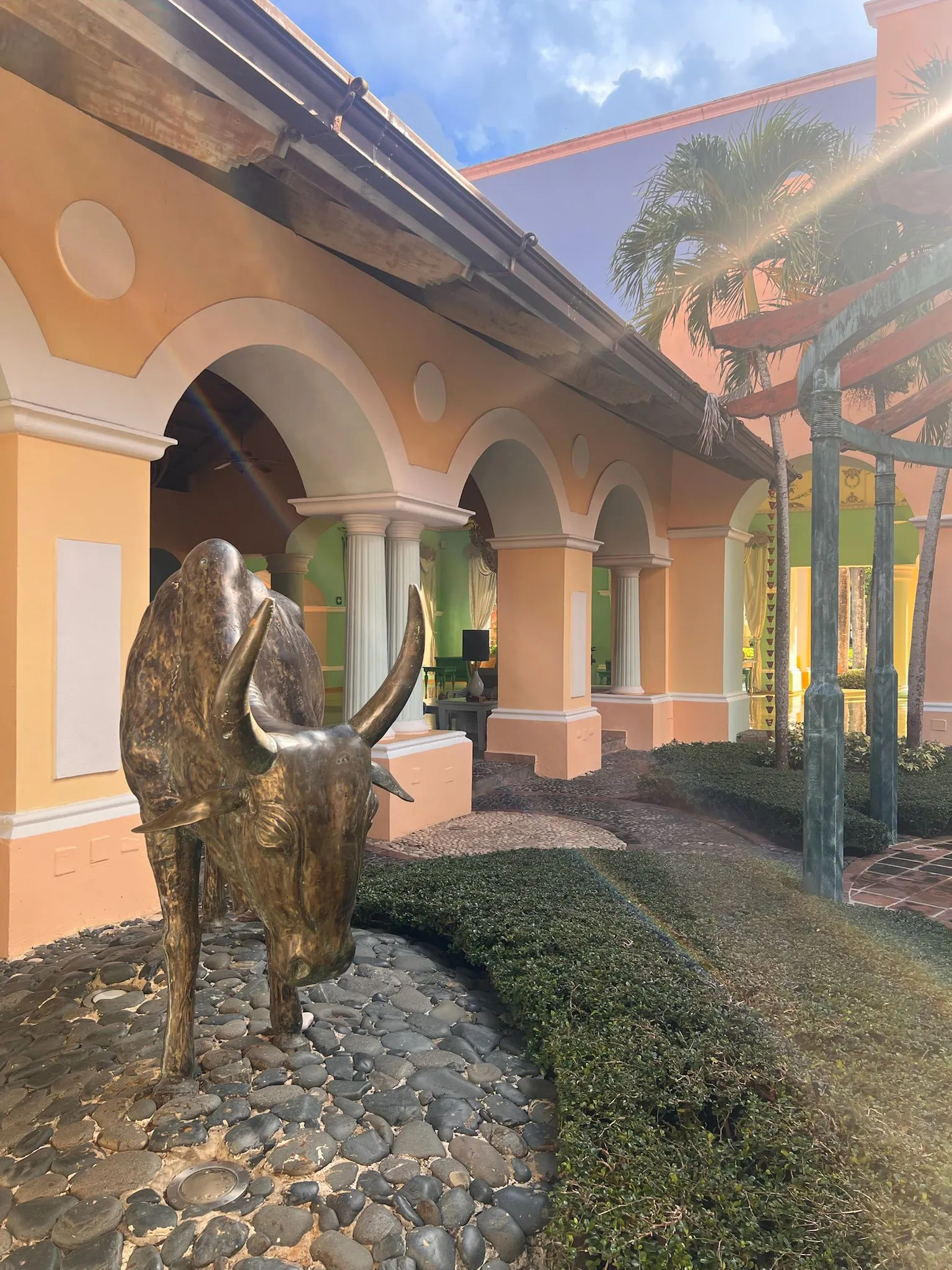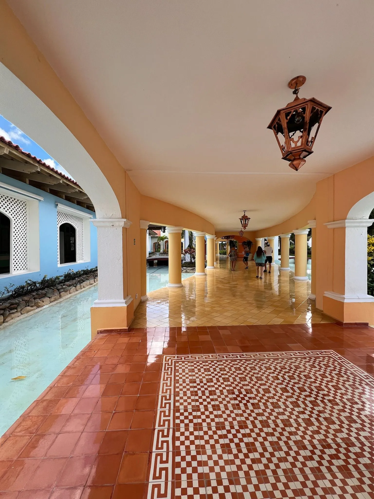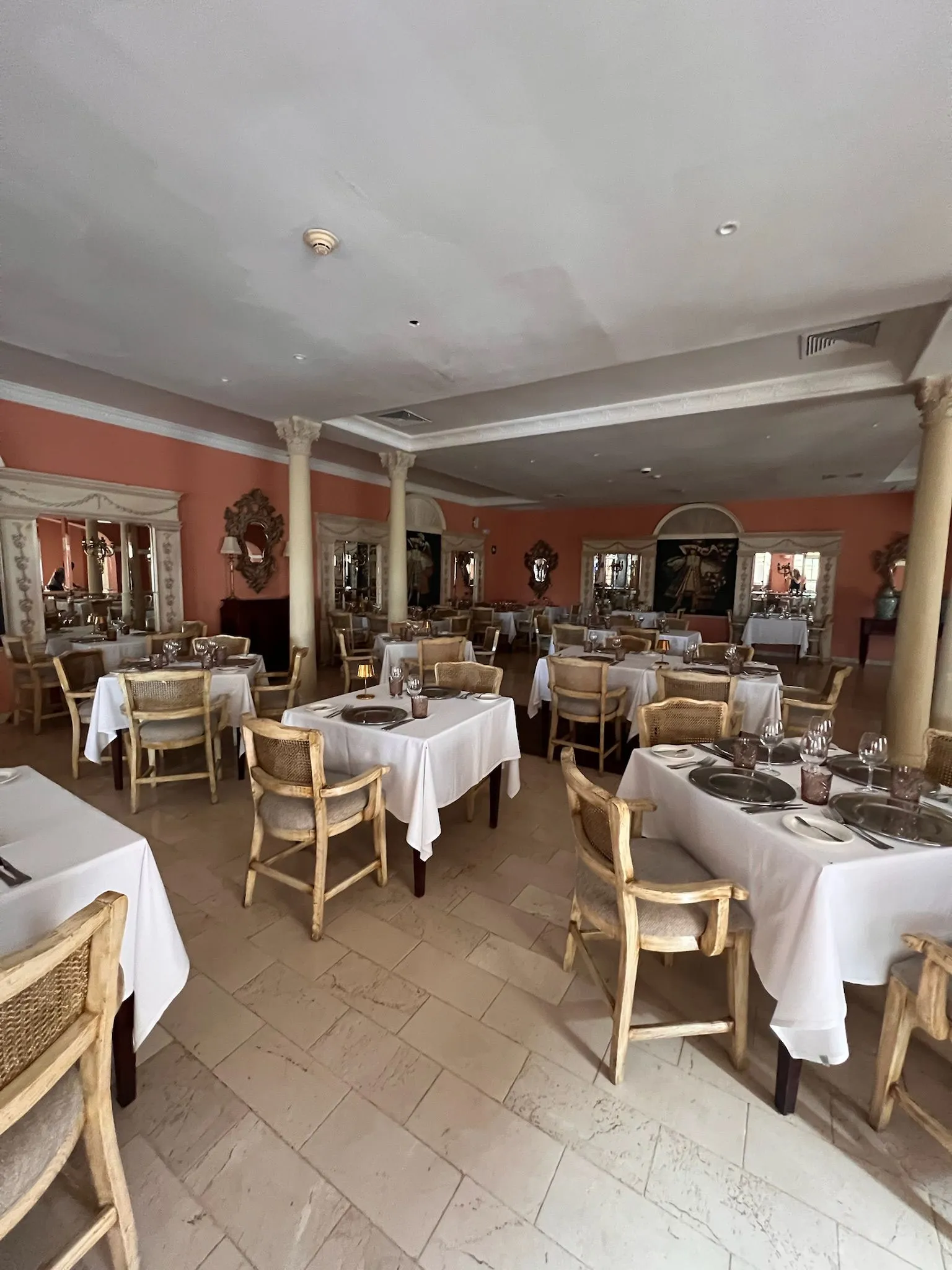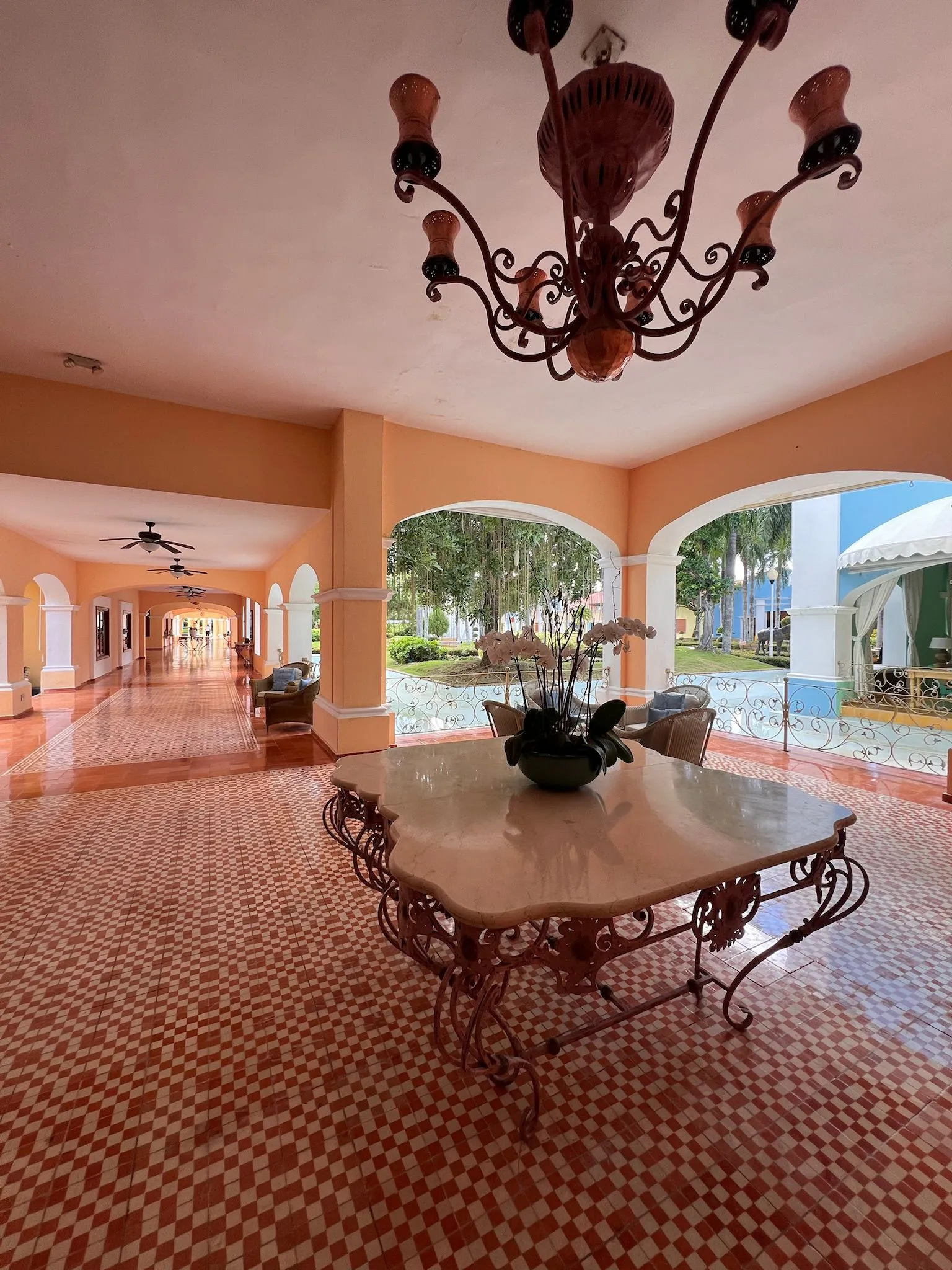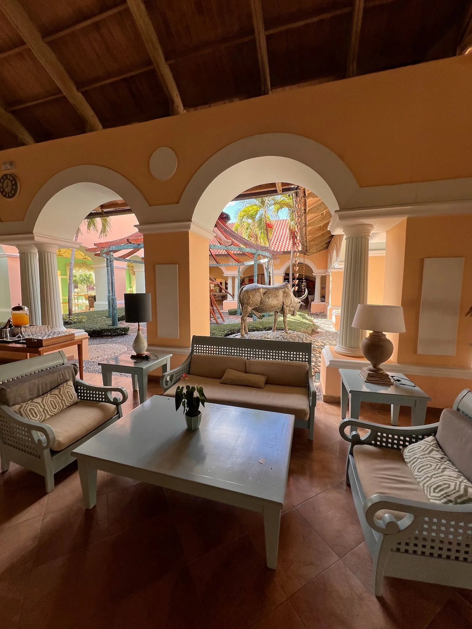 Iberostar Selection Hacienda Dominicus to hotel o kolonialnym stylu, który na pierwszy rzut oka ma być elegancki, choć w praktyce widać już oznaki zużycia. Część elementów jest odrapana lub wymaga odświeżenia – dotyczy to m.in. dekoracji wokół lobby, pustych i zaniedbanych sadzawek czy ogrodu, który nie robi takiego wrażenia, jak można by oczekiwać od obiektu tej klasy. Na plus zdecydowanie wypada zaplecze sportowe: w hotelu znajdują się korty tenisowe, boisko do koszykówki oraz dobrze wyposażona siłownia, co pozwala aktywnie spędzić czas.