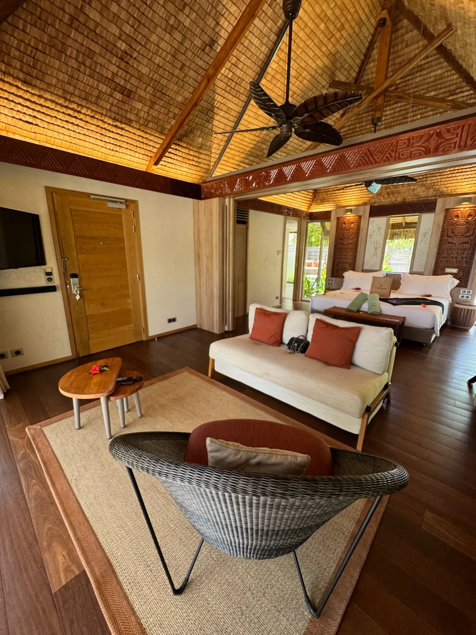Hotel Le Pearl Bora Bora to jeden z tych luksusowych ośrodków, które oferują niesamowite wrażenia z pobytu na Bora Bora, w Polinezji Francuskiej. Jest znany z doskonałej lokalizacji nad krystalicznie czystą wodą, z pięknymi widokami na turkusową lagunę i Mount Otemanu w tle. To zdecydowanie jeden z Naszych ulubieńców , hotel w nieco niższej cenie , jednak z rewelacyjnym standardem usług. W Le Pearl panuje spokojna, relaksująca atmosfera, co sprawia, że jest to świetne miejsce na romantyczny wypoczynek lub miesiąc miodowy. Warto zaznaczyć, że jest to bardziej kameralny resort, nieco mniej tłoczny niż niektóre inne ośrodki na wyspie. Le Pearl Bora Bora stawia na zrównoważony rozwój i ochronę środowiska. Starają się minimalizować wpływ na lokalną faunę i florę. Część energii w hotelu pochodzi z odnawialnych źródeł, a hotel angażuje się w projekty ochrony raf koralowych. Został sprawdzony już niejednokrotnie przez wielu Naszych wieloletnich klientów , którzy również wracali bardzo zadowoleni.