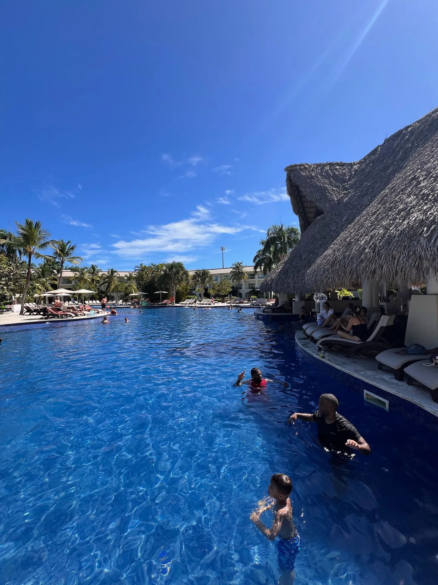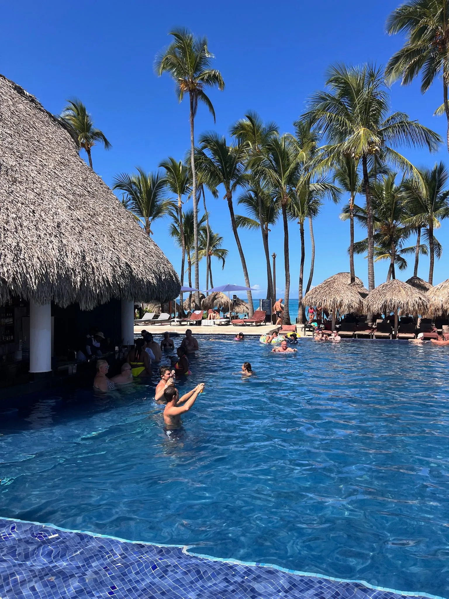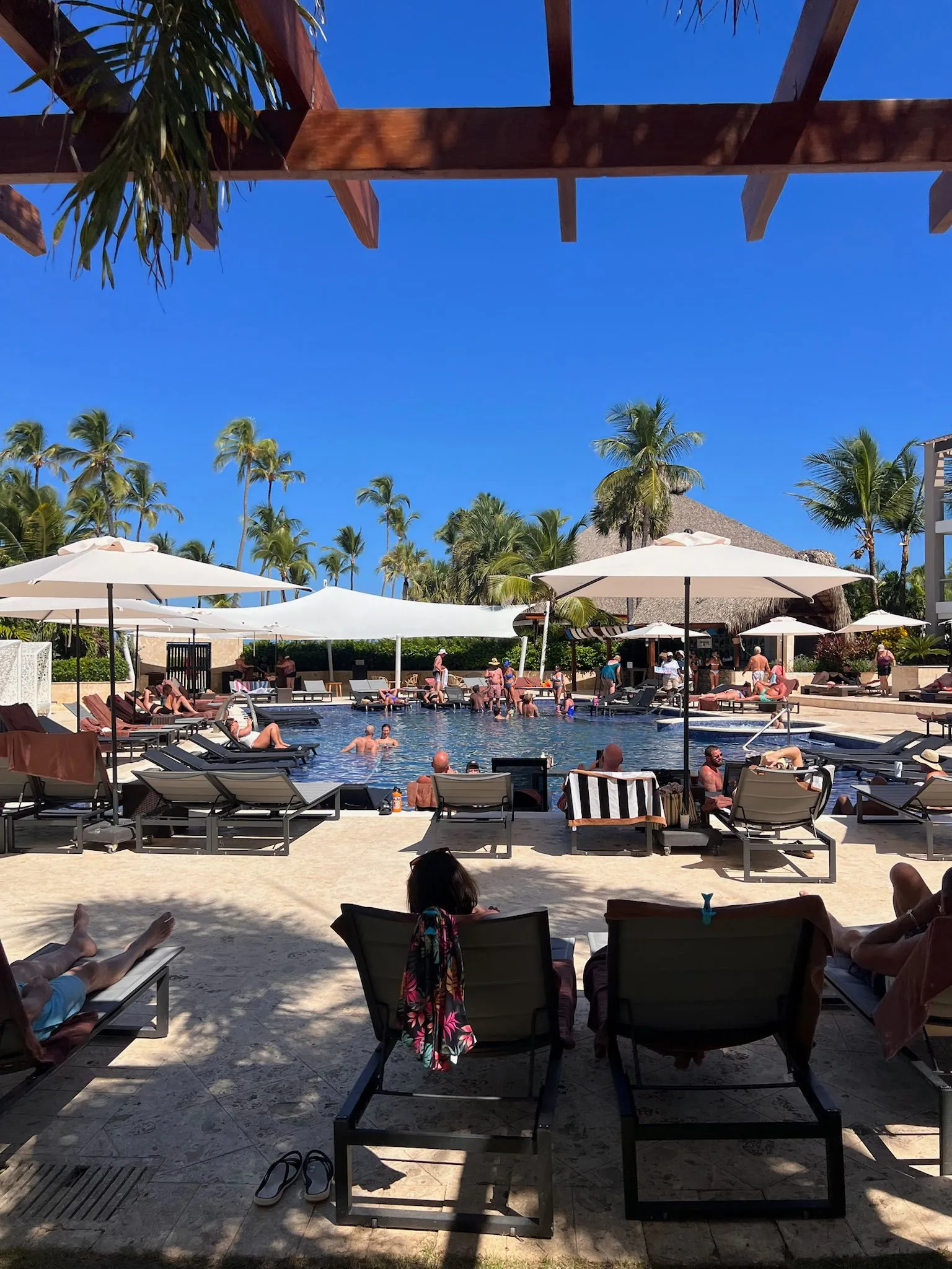 Royalton Punta Cana to nowoczesny, nieco bardziej „betonowy” resort, ale z dużo lepszym wakacyjnym klimatem niż można się spodziewać po pierwszym wrażeniu. Kluczowym atutem hotelu jest basen położony praktycznie na samej plaży oraz znacznie większa ilość palm niż w okolicznych obiektach – dzięki temu całość prezentuje się bardziej egzotycznie i relaksująco.Atmosfera przy basenie bywa głośna i żywa, co spodoba się osobom lubiącym animacje, muzykę i dynamiczny klimat. Jeśli ktoś preferuje ciszę, warto szukać spokojniejszych stref lub plaży, która oferuje więcej relaksu.