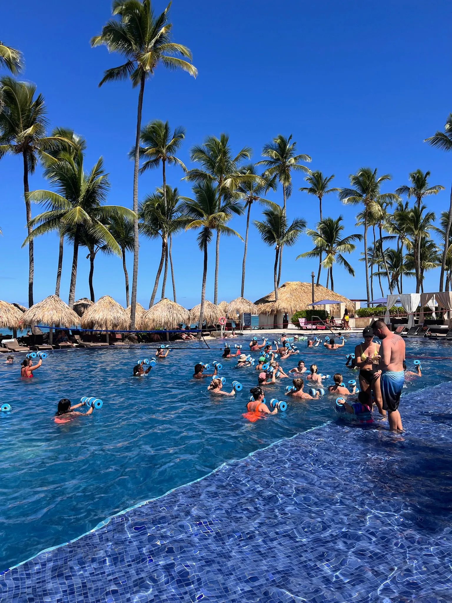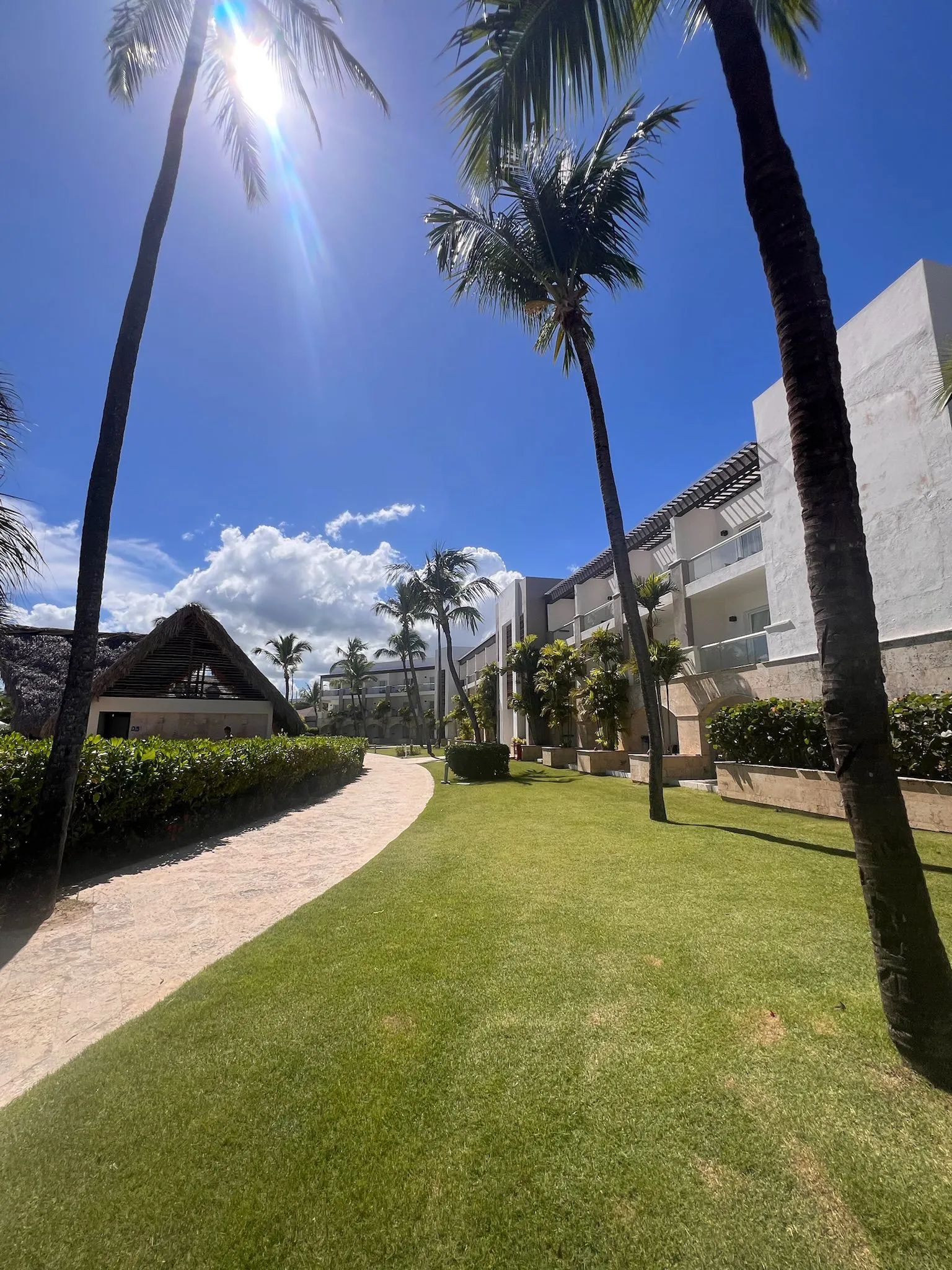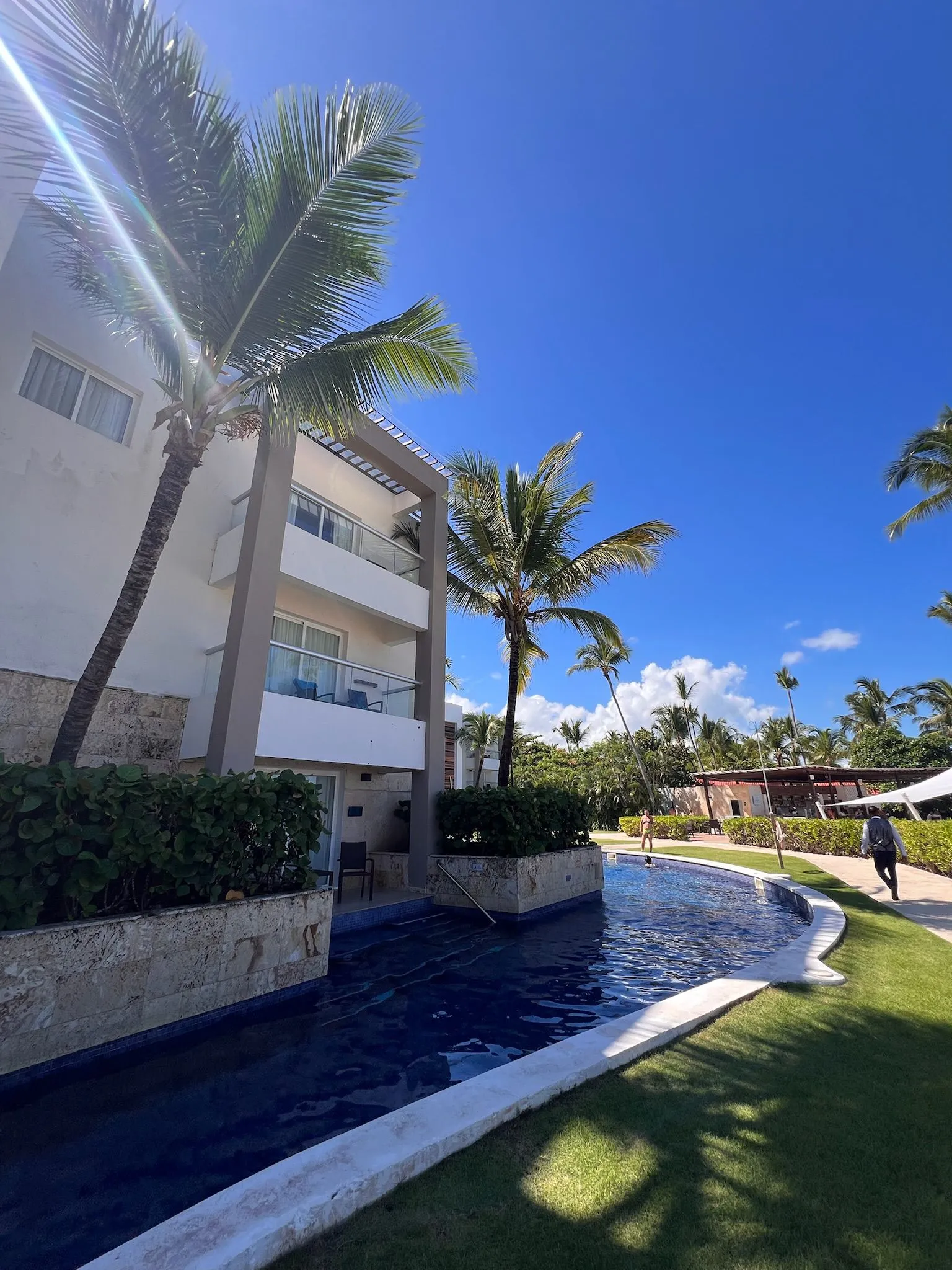 Royalton Punta Cana to nowoczesny, nieco bardziej „betonowy” resort, ale z dużo lepszym wakacyjnym klimatem niż można się spodziewać po pierwszym wrażeniu. Kluczowym atutem hotelu jest basen położony praktycznie na samej plaży oraz znacznie większa ilość palm niż w okolicznych obiektach – dzięki temu całość prezentuje się bardziej egzotycznie i relaksująco.Atmosfera przy basenie bywa głośna i żywa, co spodoba się osobom lubiącym animacje, muzykę i dynamiczny klimat. Jeśli ktoś preferuje ciszę, warto szukać spokojniejszych stref lub plaży, która oferuje więcej relaksu.